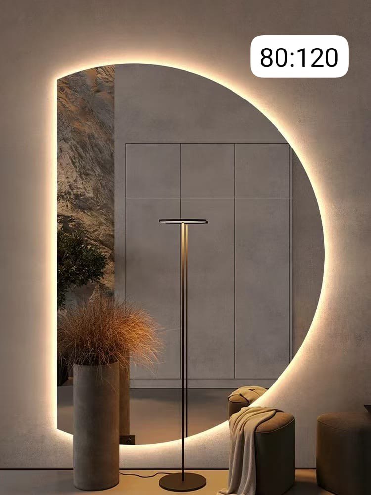 Полукруглое настенное зеркало с LED-подсветкой — стильный акцент для вашего интерьера! Размер 80×120 см идеально впишется в прихожую, гостиную или ванную комнату.