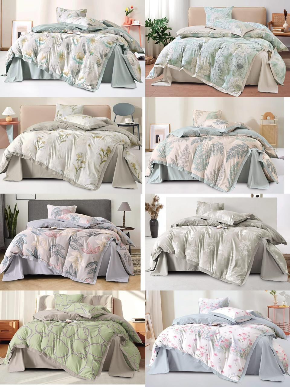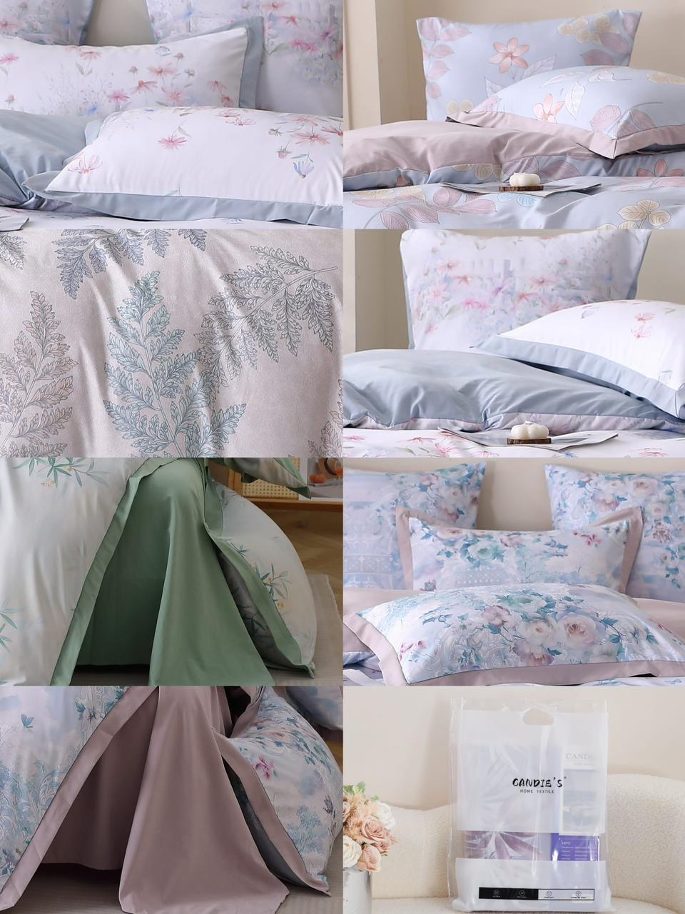 Комплект включает в себя пододеяльник, простыню и наволочки, оформленные в нежных пастельных тонах, таких как светло-голубой, нежно-розовый и мятный. Уникальный дизайн с изящными цветочными и растительными узорами привнесет в вашу спальню нотки свежести и гармонии.