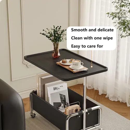 Маневренность изделия обеспечивается четырьмя поворотными роликами, которые позволяют бесшумно перемещать столик по дому, адаптируя интерьер под текущие задачи. Прочный металлический каркас гарантирует стабильность, а лаконичное исполнение в черном или благородном коричневом цвете позволяет модели гармонично вписаться как в классический, так и в минималистичный интерьер. Этот универсальный предмет мебели станет отличным решением для тех, кто ценит комфорт, эргономику и возможность держать всё необходимое под рукой.