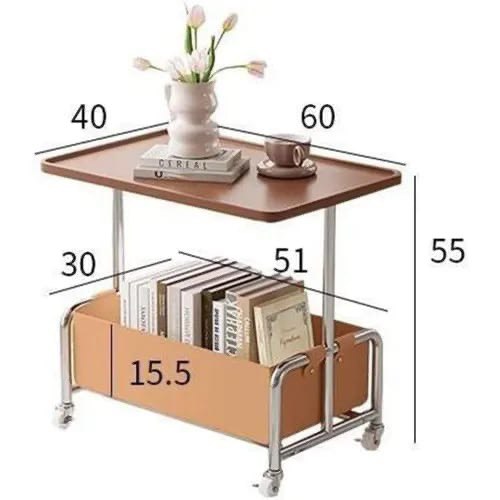 Этот приставной столик на колесиках представляет собой идеальное сочетание мобильности и современного дизайна, становясь незаменимым помощником в организации пространства. Продуманная двухъярусная конструкция включает просторную столешницу размером 60 на 40 сантиметров и глубокий нижний контейнер, в котором удобно хранить книги, журналы или другие личные вещи. Благодаря оптимальной высоте в 55 сантиметров, столик идеально подходит для использования рядом с диваном, креслом или кроватью в качестве кофейного или рабочего места.