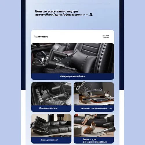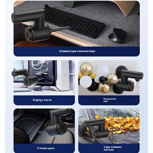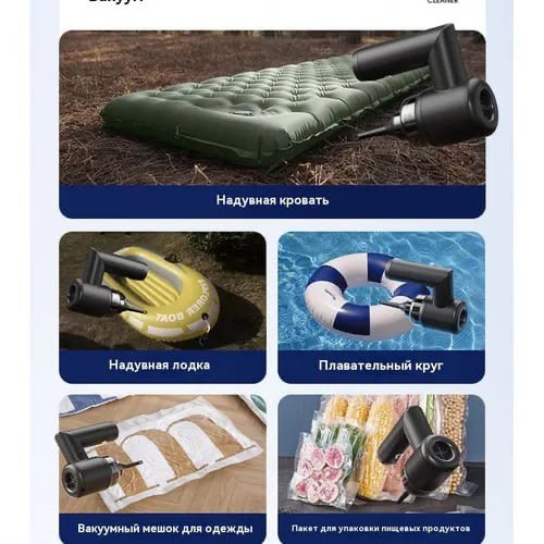 Уникальность устройства заключается в его реверсивном режиме работы: оно способно не только всасывать пыль, но и нагнетать воздух или создавать вакуум. Это делает его незаменимым помощником в быту и на отдыхе — прибор быстро надувает матрасы, лодки и плавательные круги, а также эффективно откачивает воздух из вакуумных пакетов для хранения одежды или продуктов. Беспроводная конструкция с зарядкой через USB-порт гарантирует полную мобильность, позволяя использовать гаджет в любом месте без привязки к розетке.