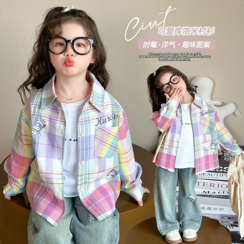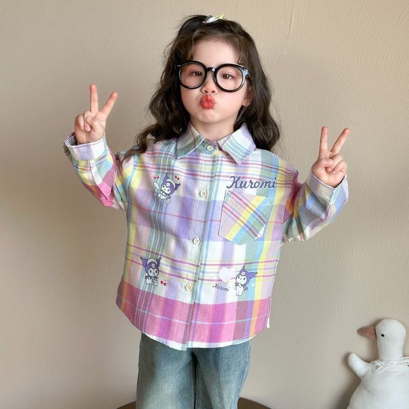 Стильная детская рубашка с длинным рукавом выполнена в нежных пастельных тонах с классическим клетчатым принтом. Модель украшена изображениями популярного персонажа Kuromi, что обязательно понравится юным поклонницам Sanrio. Изделие имеет свободный крой, дополнено нагрудным карманом и застегивается на удобные пуговицы. Плотная и мягкая ткань обеспечивает комфорт при повседневной носке в любое время года.