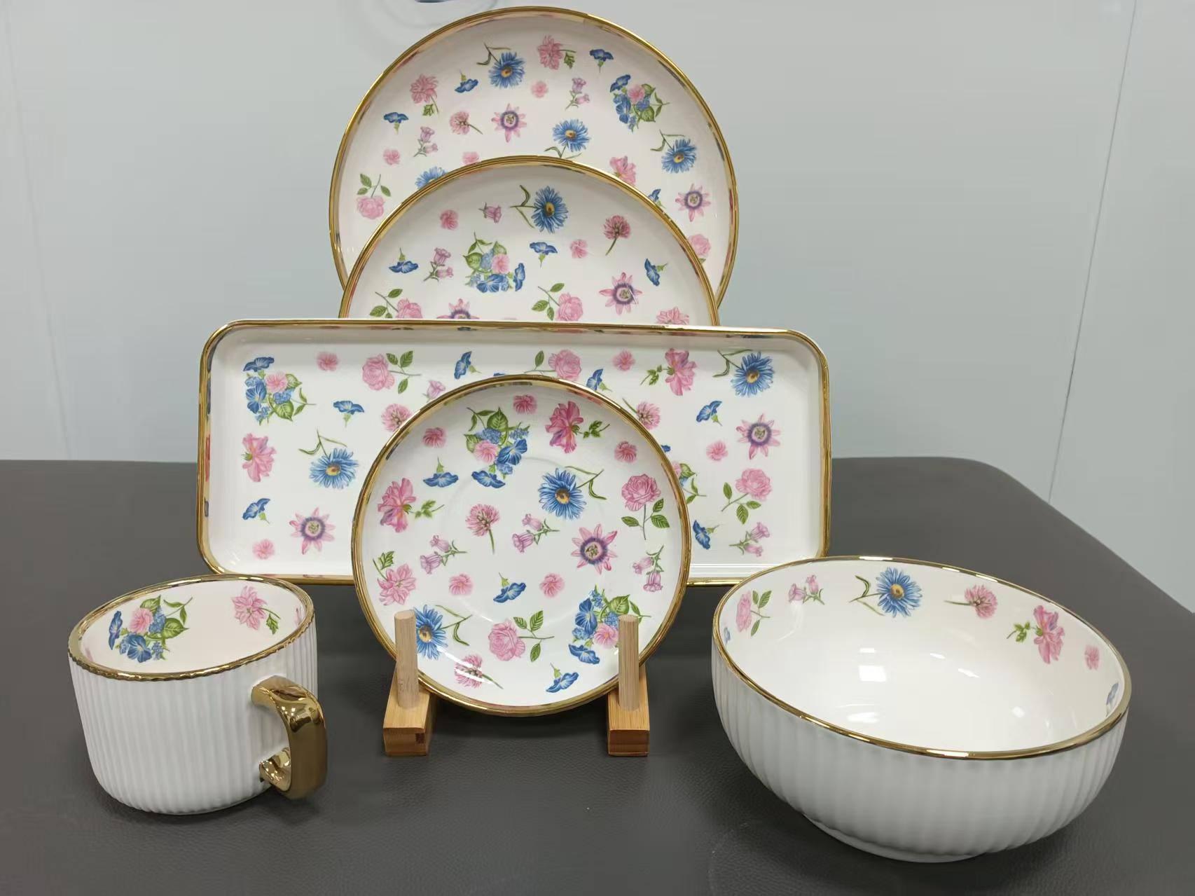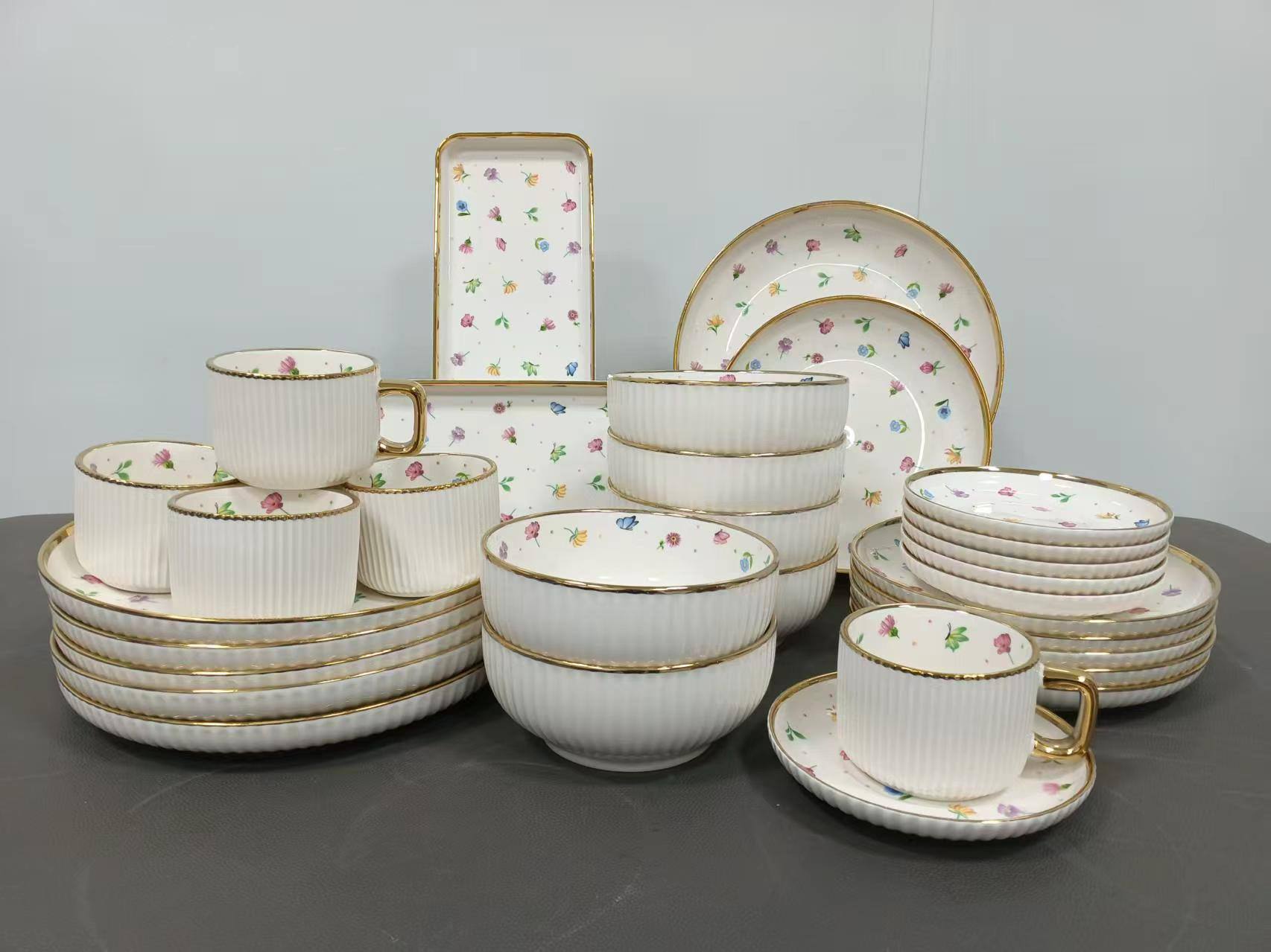 Премиальный сервиз из тонкого фарфора украсит любой стол и превратит обычный обед в торжественное событие. Нежный цветочный узор в пастельных тонах в сочетании с золотой окантовкой создаёт ощущение классической роскоши.