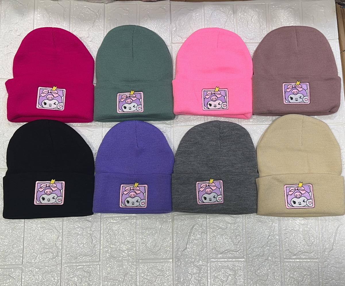 Шапки-бини с милым патчем My Melody, Kuromi, Labubu — стиль и тепло в одном аксессуаре!