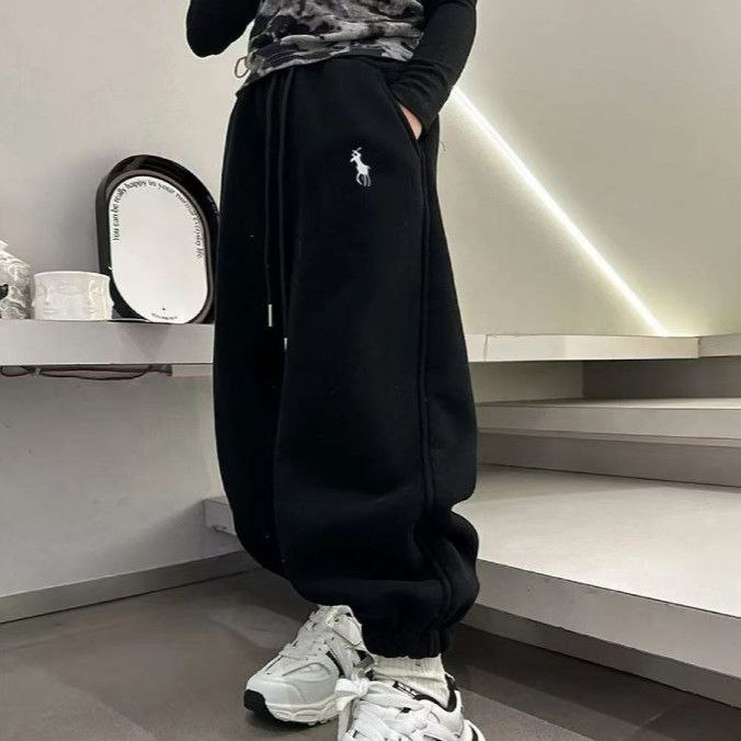 Спортивные штаны свободного кроя — удобная вещь для повседневной носки. Выполнены из мягкого флиса, имеют эластичный пояс со шнурком и манжеты на щиколотках. Модель отличается практичностью и комфортом, подходит для активного отдыха и домашнего использования.