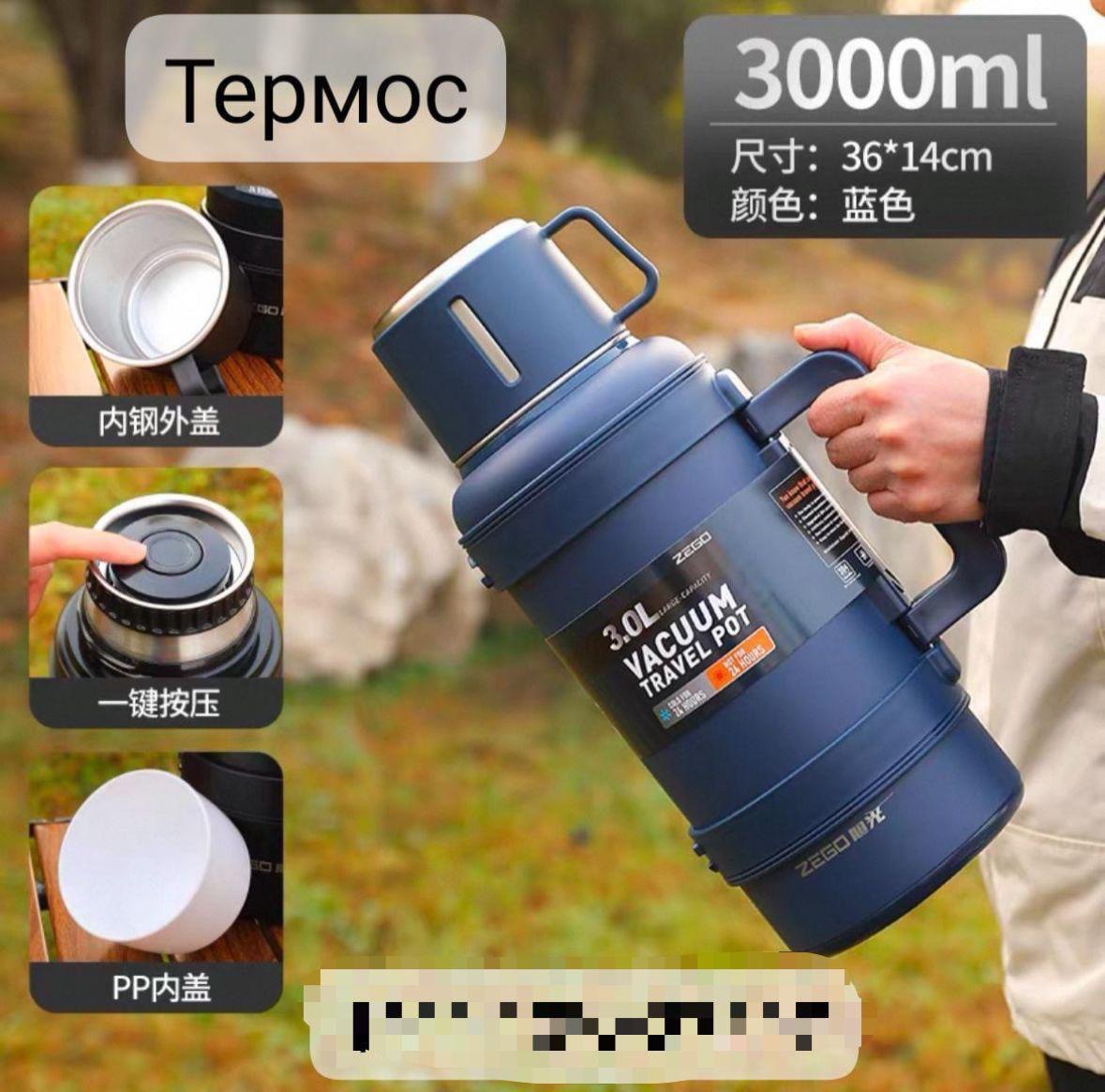 Большой вакуумный термос 3.0 л — ваш надёжный помощник на выезде. Вместительная колба из нержавеющей стали сохраняет напитки и первые блюда в комфортной температуре, а продуманная конструкция предотвращает протечки. Крышка выполняет функцию чашки, а внутренняя герметичная пробка из пищевого PP обеспечивает чистоту и удобство наливания. Однокнопочная система открытия позволяет наливать горячие напитки одной рукой, не снимая крышку полностью — удобно и безопасно. Ручка и ремень облегчают переноску даже при полной загрузке. Подойдёт для походов, пикников, авто-путешествий и работы на выезде.