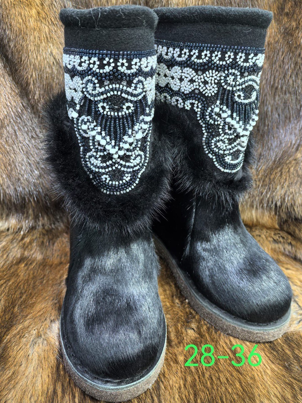• Изысканный декор: Голенище унтов украшено восхитительным орнаментом из бисера, выполненным вручную в традициях северных народов. Этот сложный и кропотливый труд превращает унты в настоящее произведение искусства, подчеркивающее вашу индивидуальность и хороший вкус.
