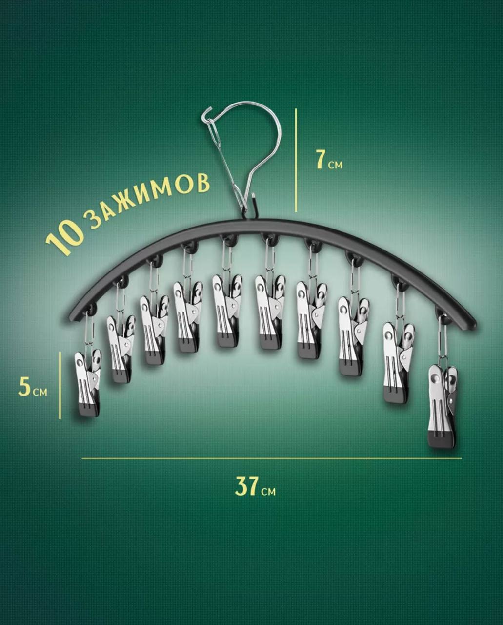Многофункциональная вешалка-организатор представляет собой выверенную систему для оптимизации внутреннего пространства гардероба или сушильной зоны. Конструкция базируется на прочной дугообразной раме шириной 37 сантиметров, которая обеспечивает равномерное распределение нагрузки и удобный визуальный доступ к каждому из десяти закрепленных элементов. Модель выполнена в лаконичном стиле, сочетая матовый черный корпус с надежной металлической фурнитурой, что гарантирует долгий срок службы изделия при интенсивной повседневной эксплуатации.
