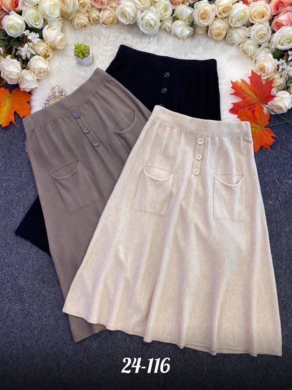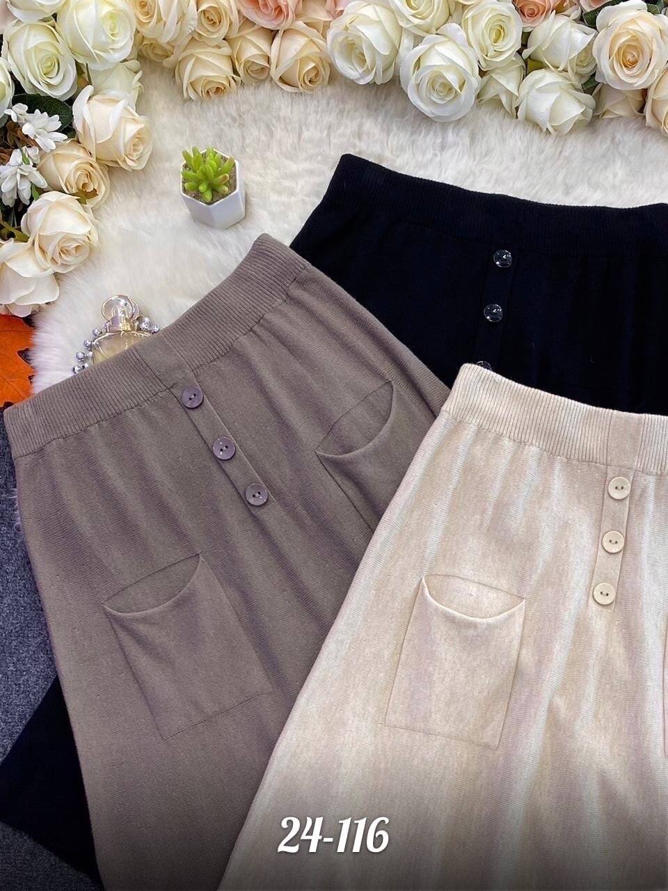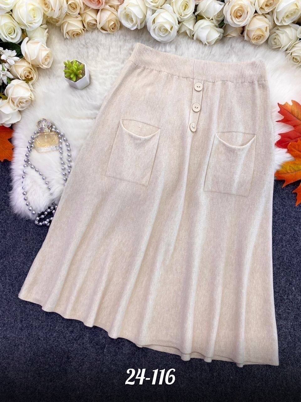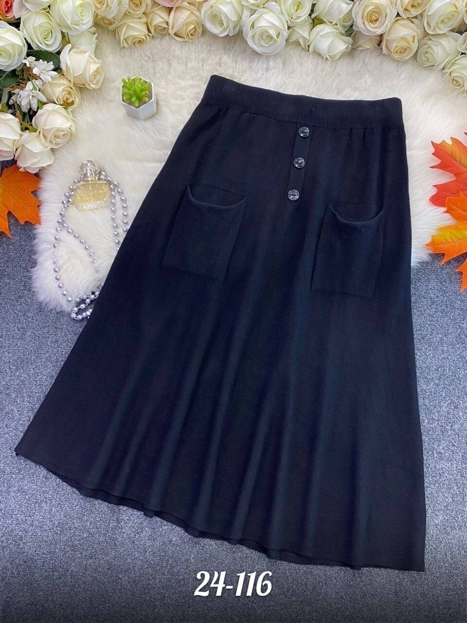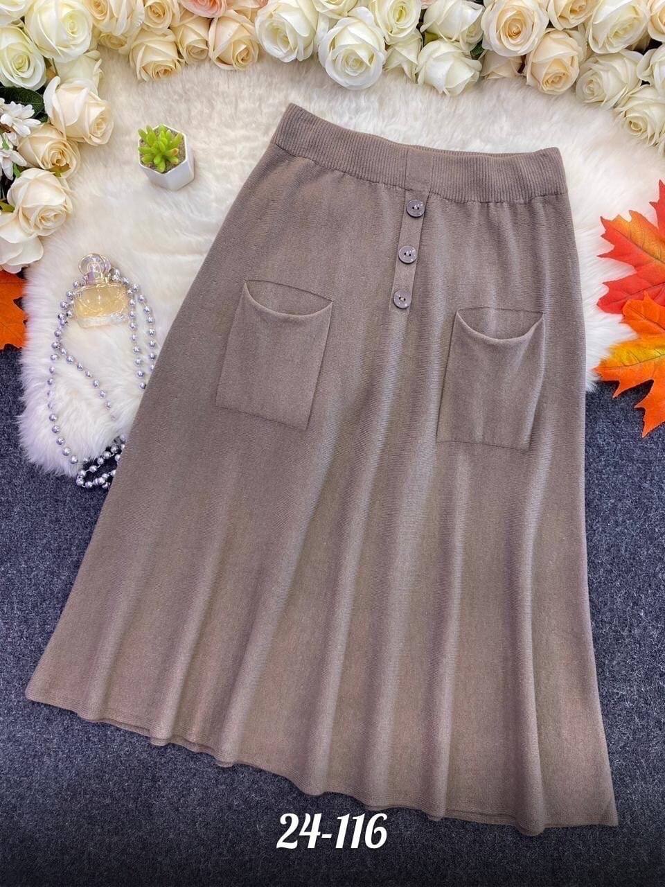 Юбка миди А-силуэта с завышенной талией и эластичным поясом. Модель украшена декоративными пуговицами спереди и оснащена двумя накладными карманами по бокам. Мягкая ткань обеспечивает комфорт и свободу движений. Практичный и универсальный вариант для повседневных образов.