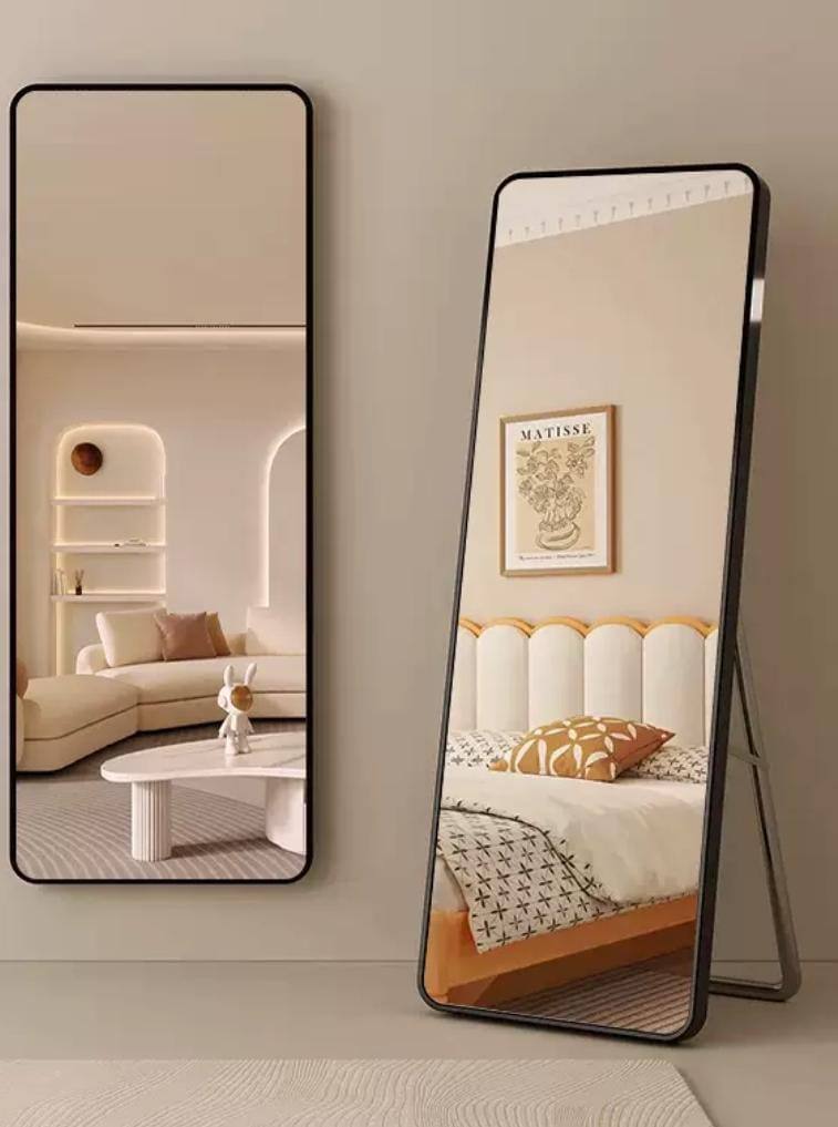 Особенностью является наличие специальной подставки, позволяющей устанавливать зеркало вертикально. Это создает эффект парящего в воздухе отражения, добавляя пространству глубины и динамики. Такой элемент дизайна превращает обычное зеркало в стильный аксессуар, привлекающий внимание гостей.
