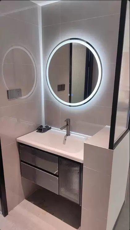 Главная особенность этого зеркала — встроенная светодиодная подсветка, расположенная по периметру. Она создает мягкий, рассеянный свет, который равномерно распределяется вокруг зеркала, обеспечивая отличное освещение для утренних ритуалов ухода за собой. Светодиоды имеют теплый оттенок, приближенный к дневному свету, что помогает избежать теней и искажений при нанесении макияжа или бритье.