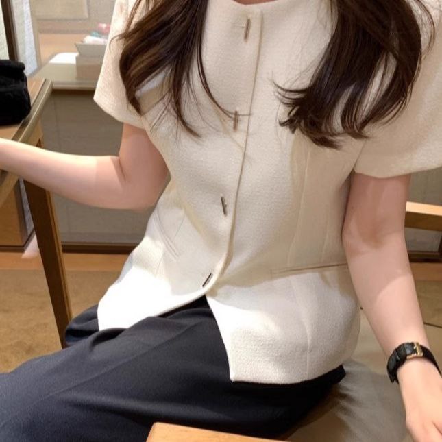 Жакет с короткими рукавами приталенного кроя.