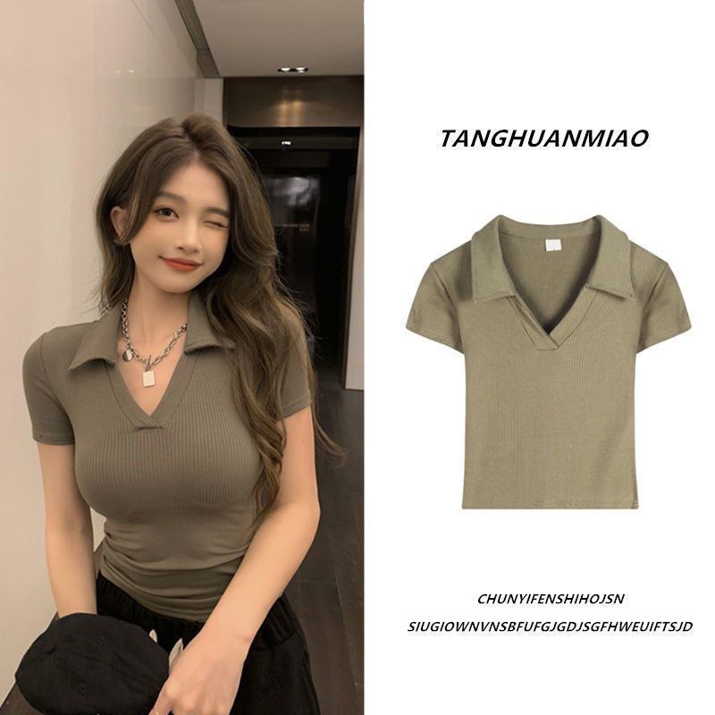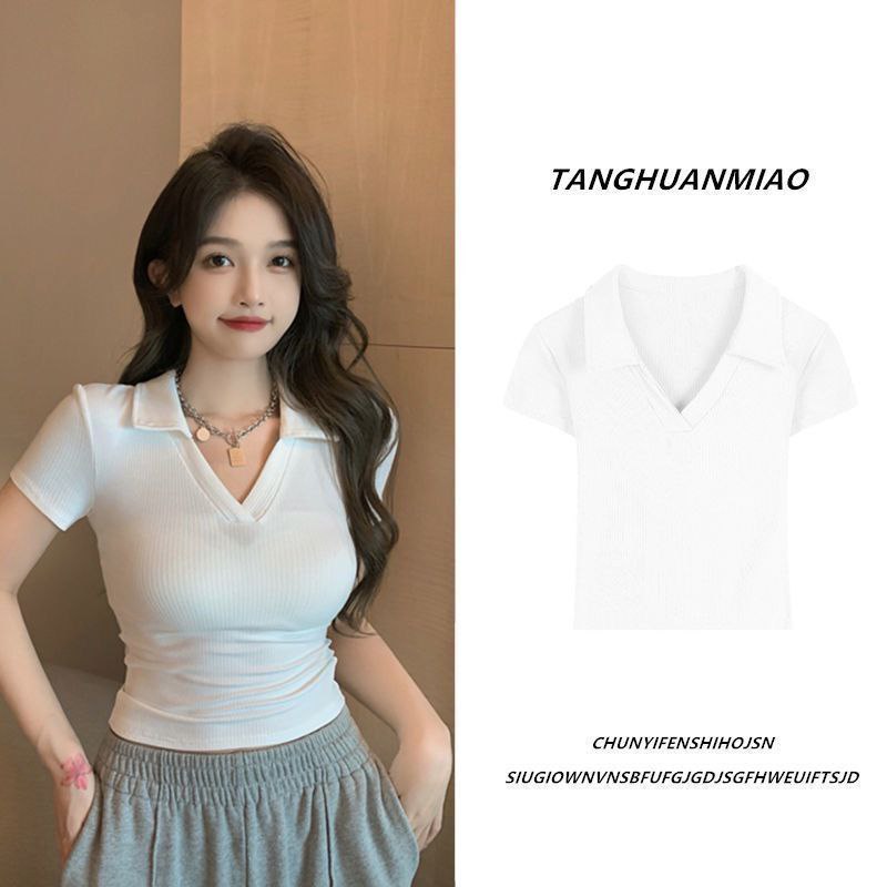 Женская футболка-поло с короткими рукавами и V-образным вырезом. Модель выполнена в лаконичном дизайне: приталенный силуэт подчёркивает фигуру, отложной воротник добавляет элегантности. Ткань в рубчик приятна на ощупь, обеспечивает комфорт в носке. Практичный вариант для повседневных образов — подойдёт для учёбы, прогулок или отдыха.