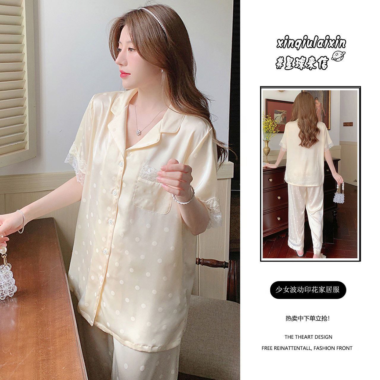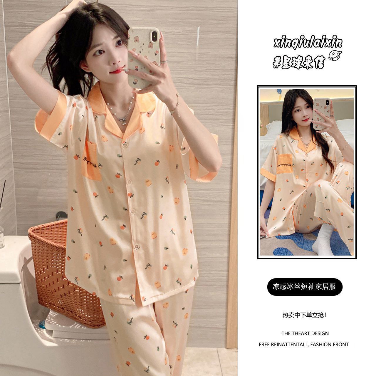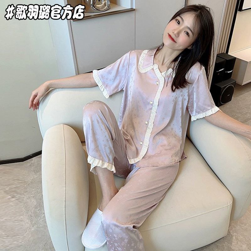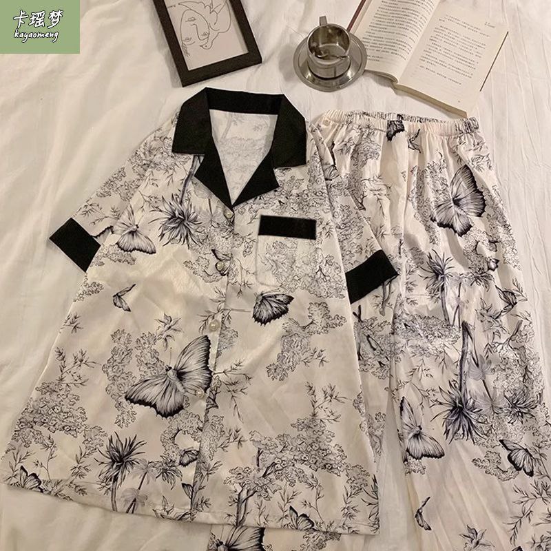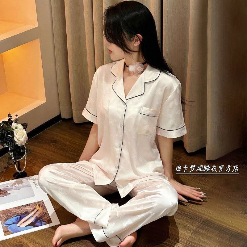 Элегантный и комфортный комплект для сна и дома, выполненный в классическом пижамном стиле. Комплект состоит из рубашки с коротким рукавом на пуговицах и длинных брюк на резинке. Изделия изготовлены из гладкой, легкой ткани с шелковистой текстурой, которая обеспечивает приятное ощущение прохлады и нежности. Многие модели дополнены декоративными элементами: контрастным кантом, кружевом или нежными принтами.