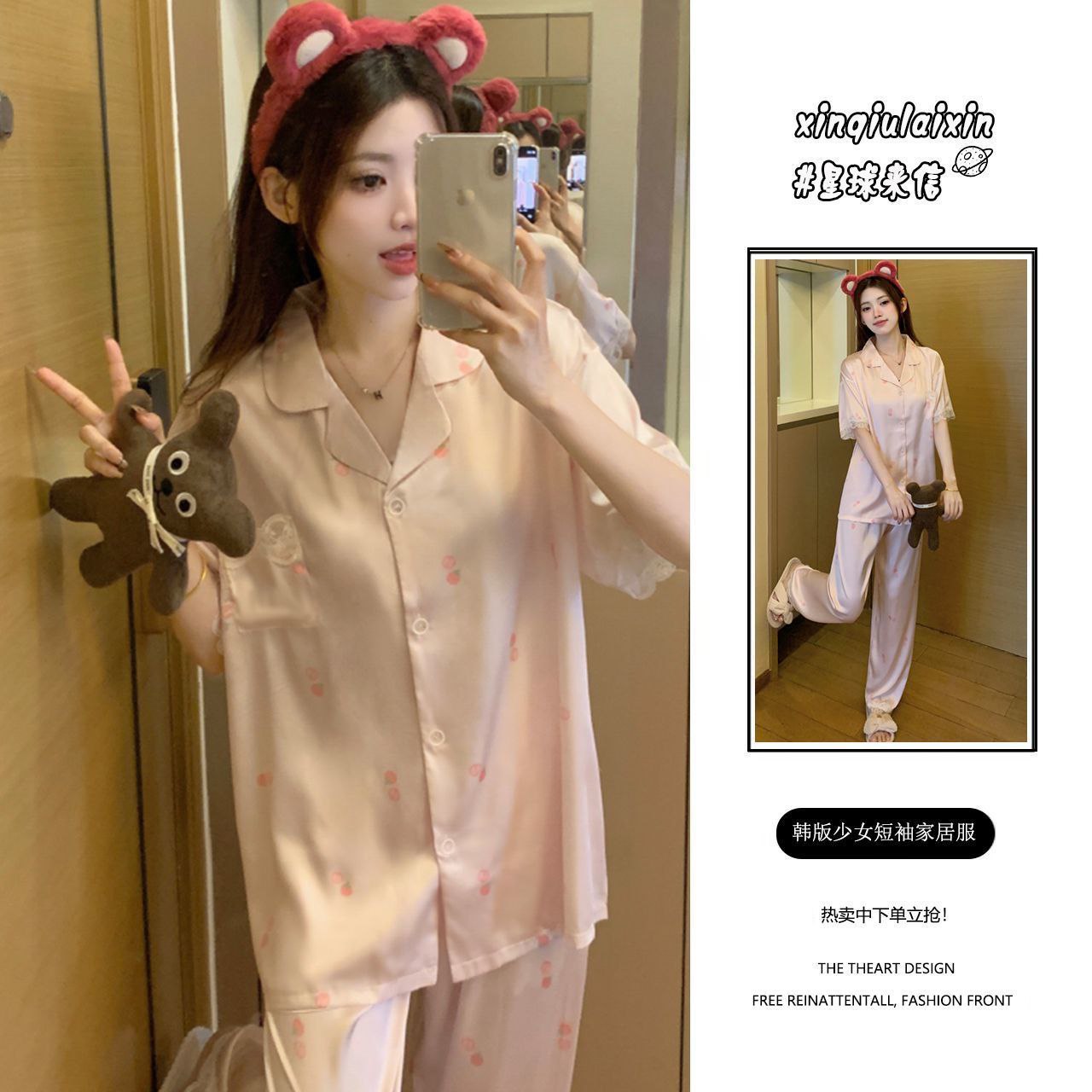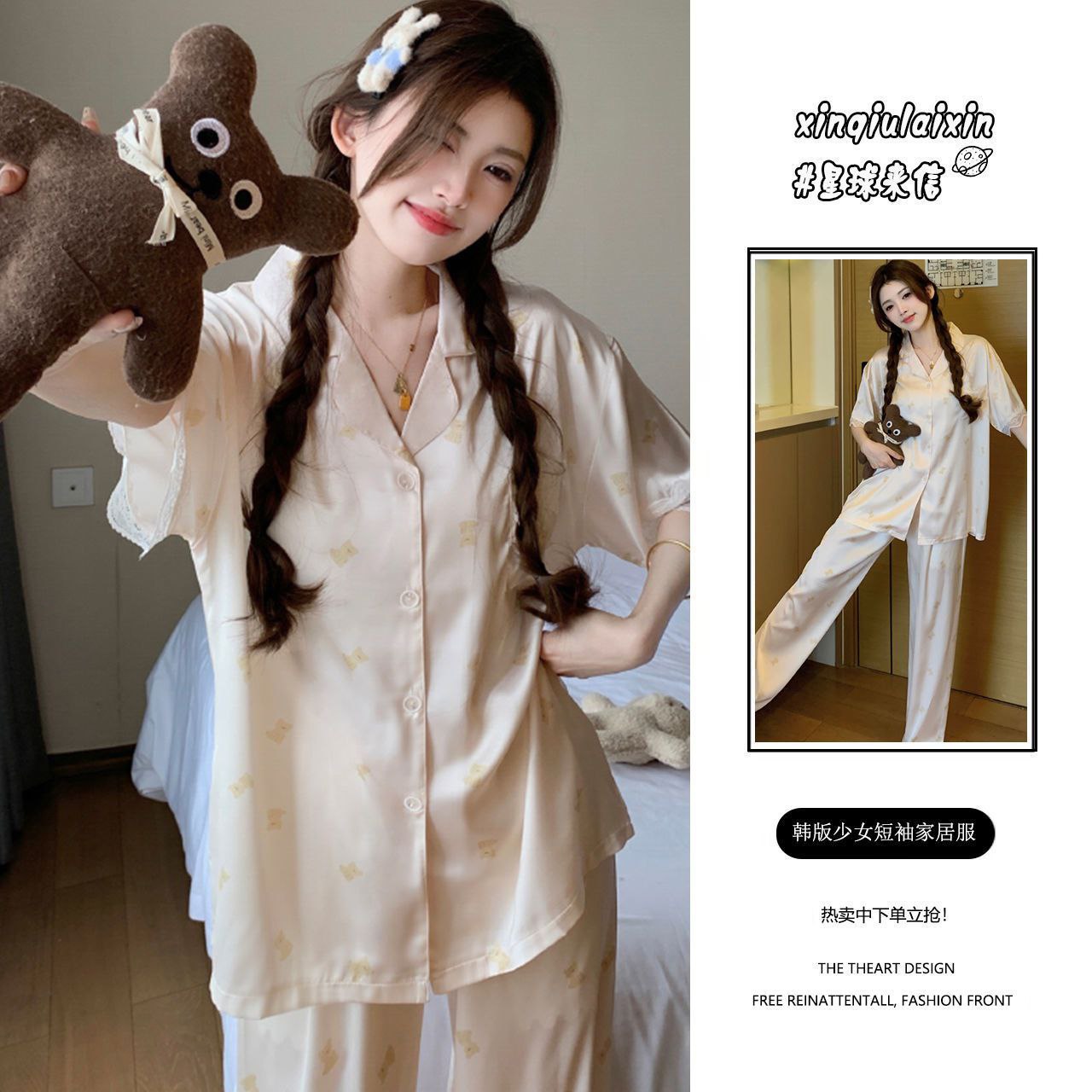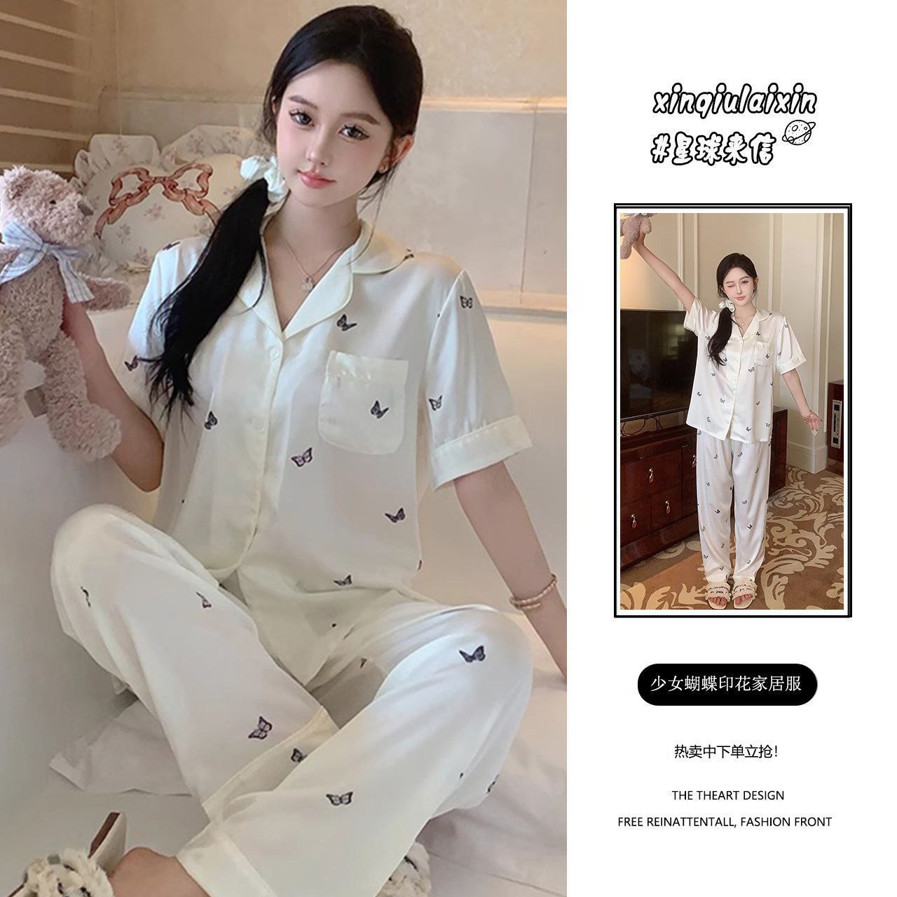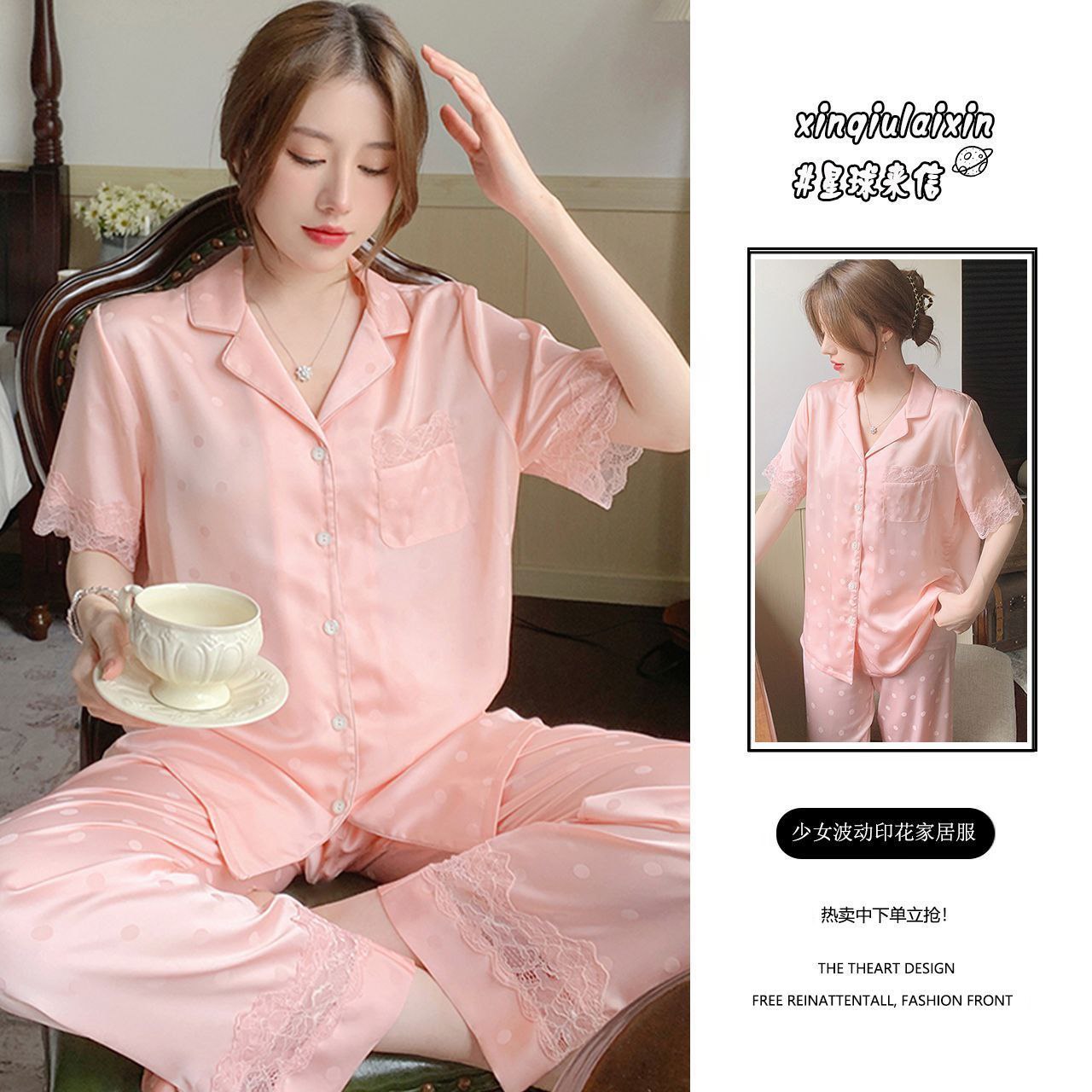 Элегантный и комфортный комплект для сна и дома, выполненный в классическом пижамном стиле. Комплект состоит из рубашки с коротким рукавом на пуговицах и длинных брюк на резинке. Изделия изготовлены из гладкой, легкой ткани с шелковистой текстурой, которая обеспечивает приятное ощущение прохлады и нежности. Многие модели дополнены декоративными элементами: контрастным кантом, кружевом или нежными принтами.