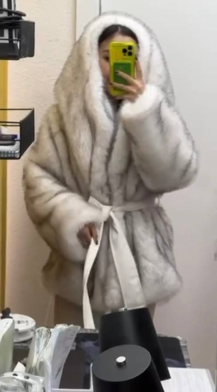 Шуба имеет объемный капюшон, который не только добавляет дополнительную защиту от холода, но и придает образу утонченности. Внутренняя подкладка выполнена из мягкого и приятного на ощупь материала, обеспечивающего комфорт при носке.