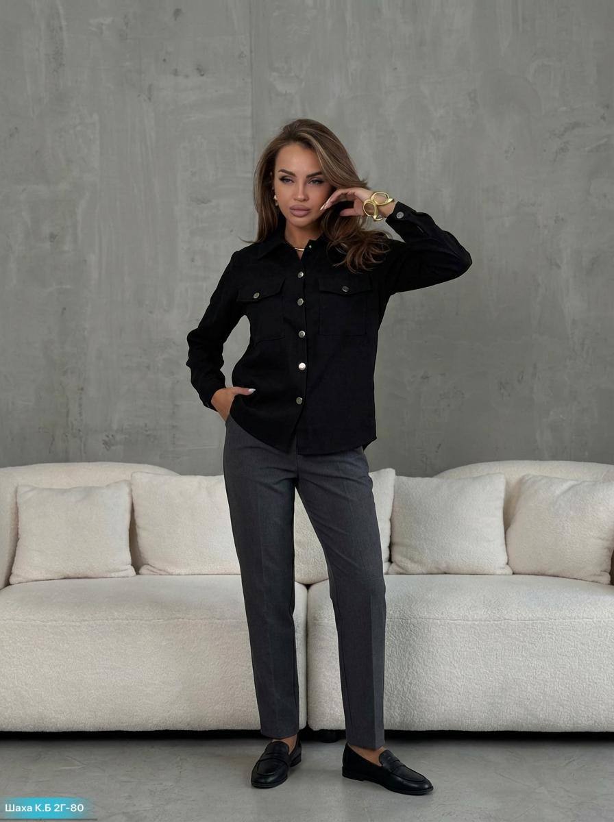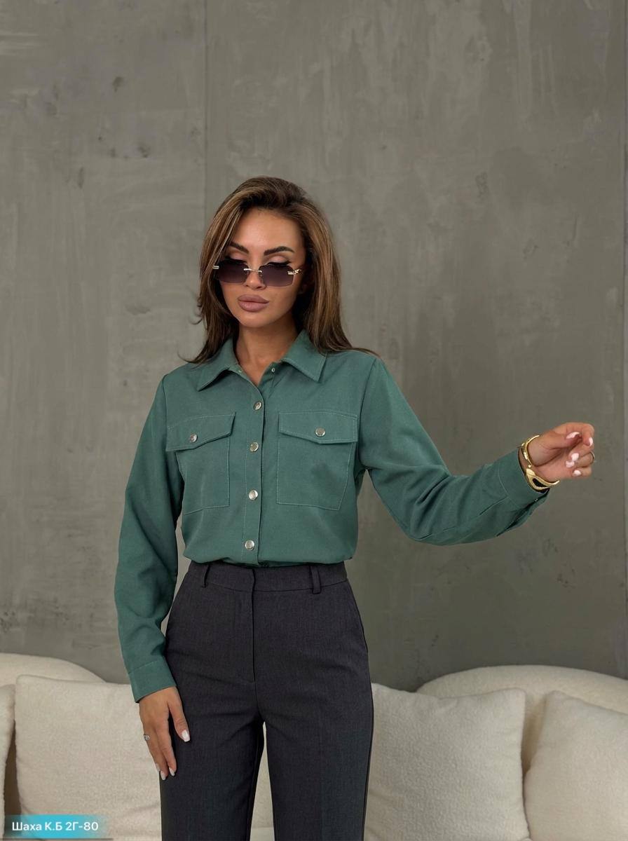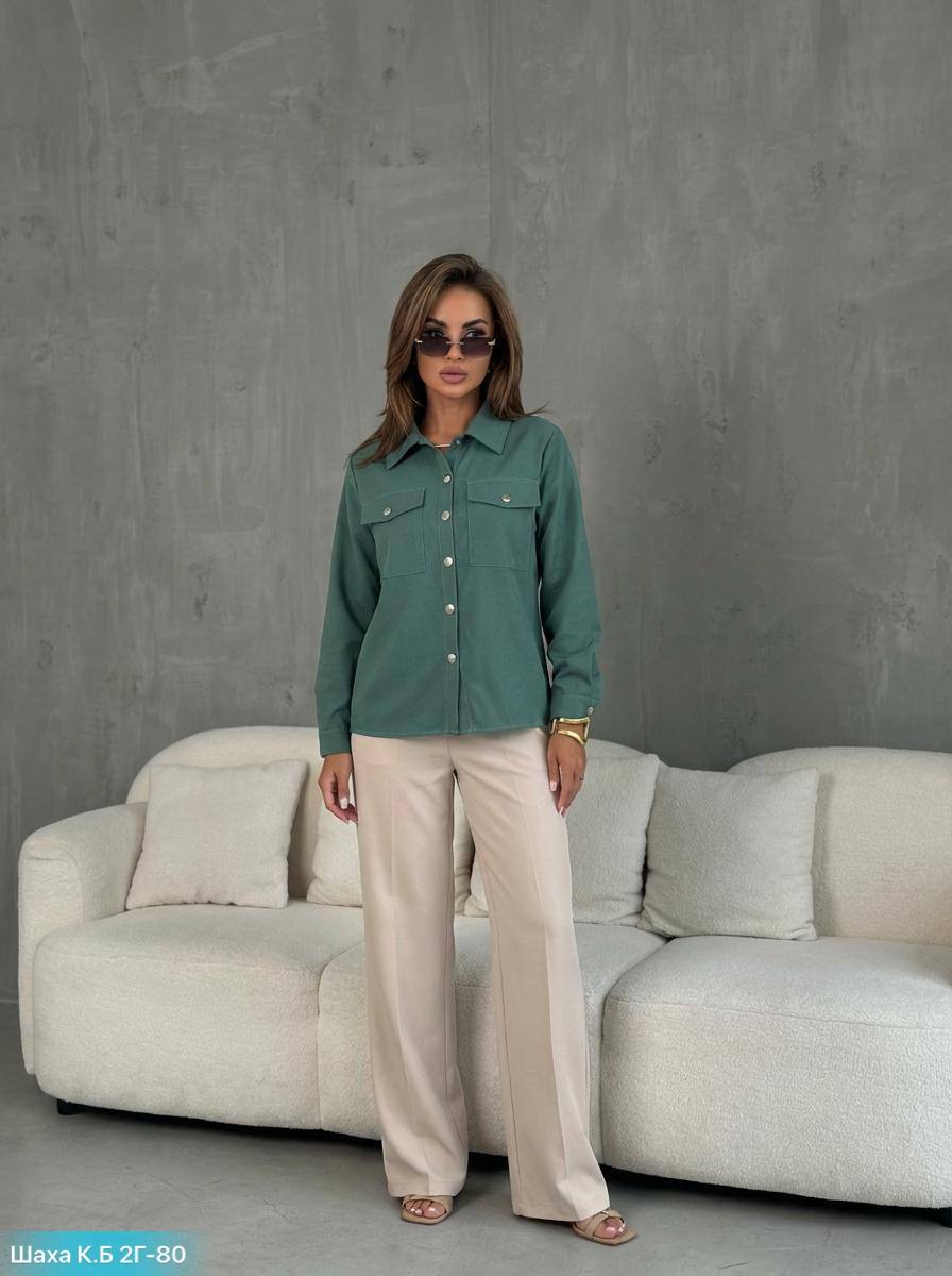 Женская вельветовая рубашка с классическим кроем.