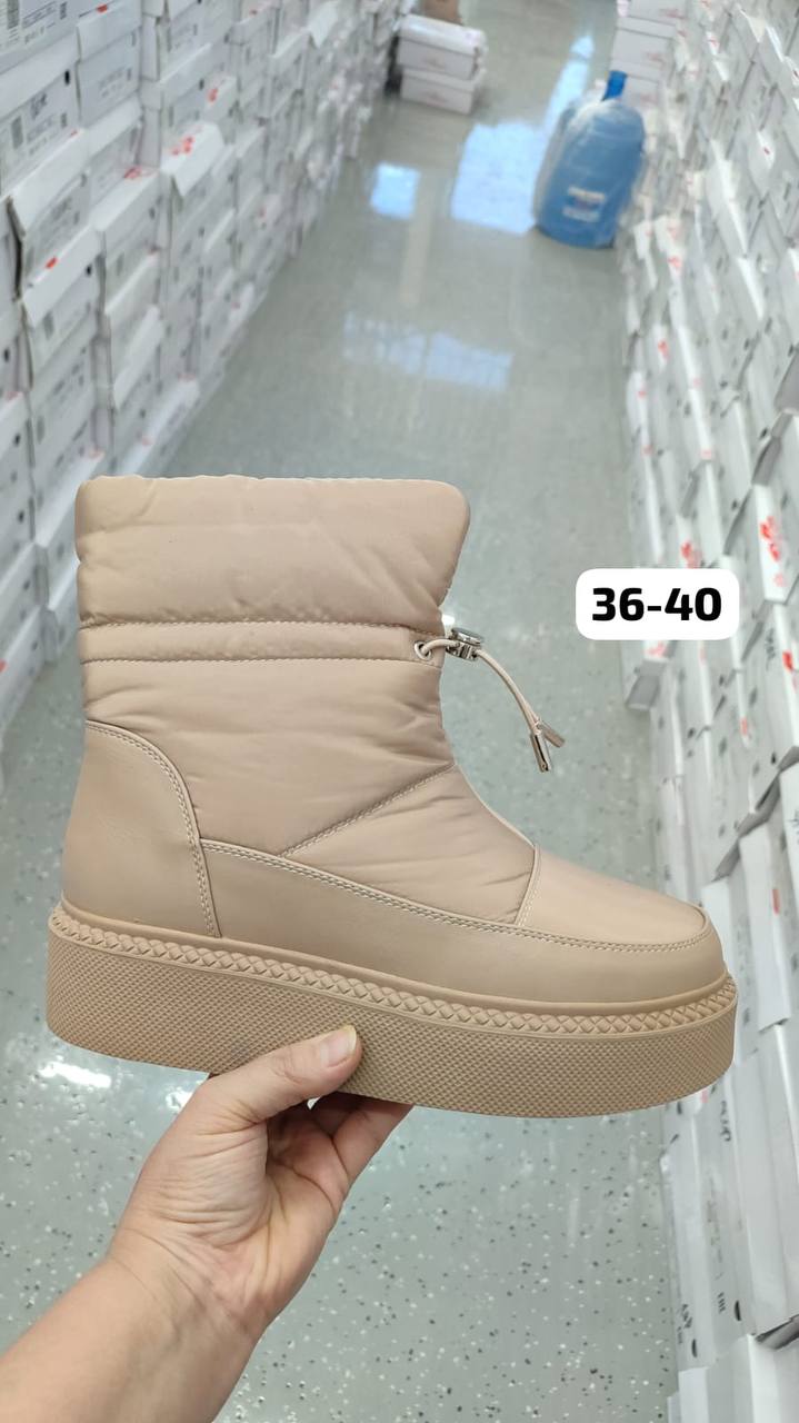В верхней части ботильона расположен удобный шнурок-затяжка с элегантным металлическим фиксатором, который позволяет регулировать объем голенища и обеспечивает плотное прилегание, предотвращая попадание снега и холодного воздуха. Эта деталь придает обуви дополнительный акцент и делает ее более функциональной. Отсутствие лишних декоративных элементов подчеркивает минималистичный и одновременно выразительный стиль модели.