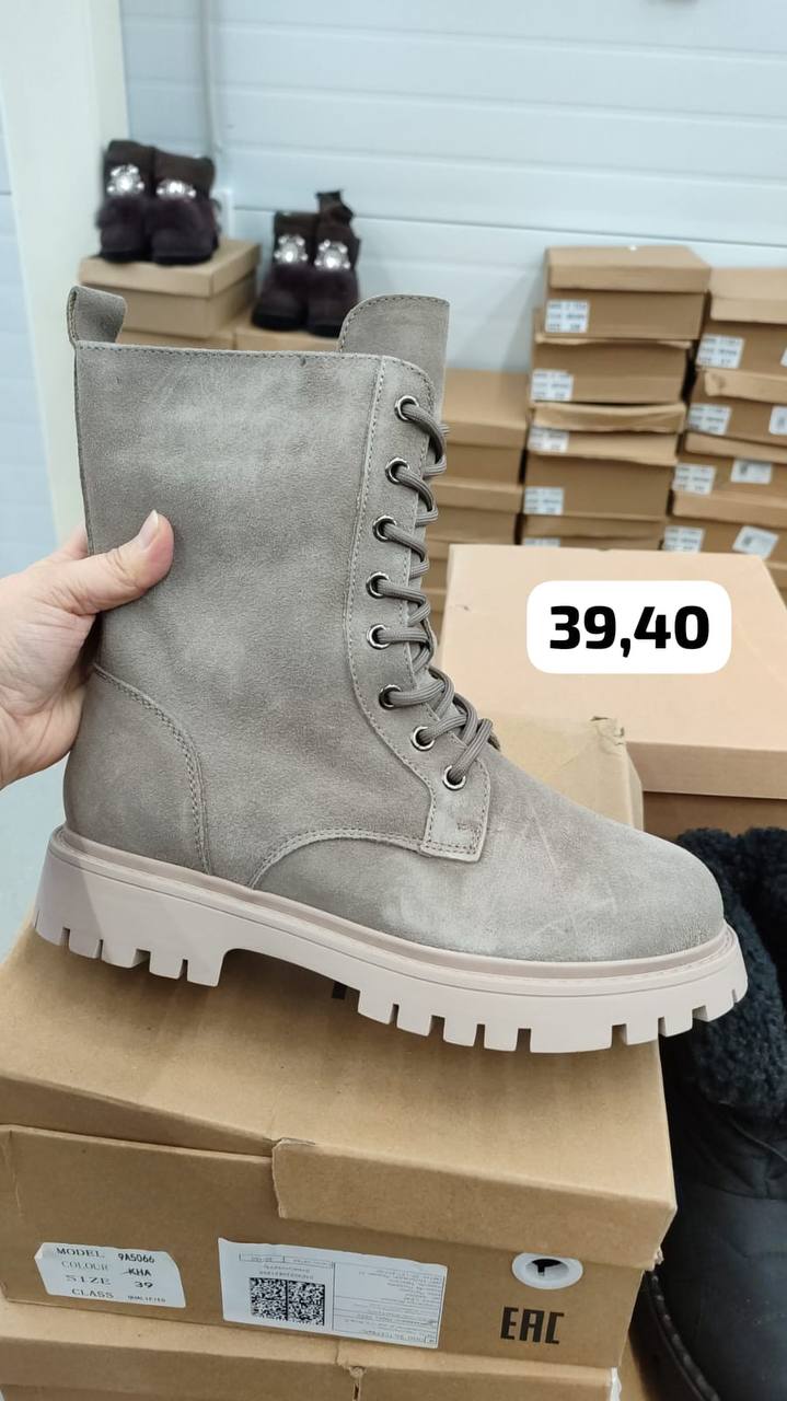 Классическая шнуровка с металлическими люверсами позволяет не только идеально подогнать обувь по ноге, но и является характерной деталью стиля берцев, придавая ботинкам выразительный и дерзкий характер. Внутренняя отделка, вероятно, выполнена из теплого текстильного материала, обеспечивая комфорт и защиту от холода в осенне-зимний период. Эта модель является отличным примером того, как практичность может сочетаться с модным внешним видом, предлагая обувь, которая будет актуальна в самых разных ситуациях. Наличие размеров 39 и 40 указывает на то, что эта пара идеально подойдет для тех, кто ищет стильное и комфортное решение на холодное время года.