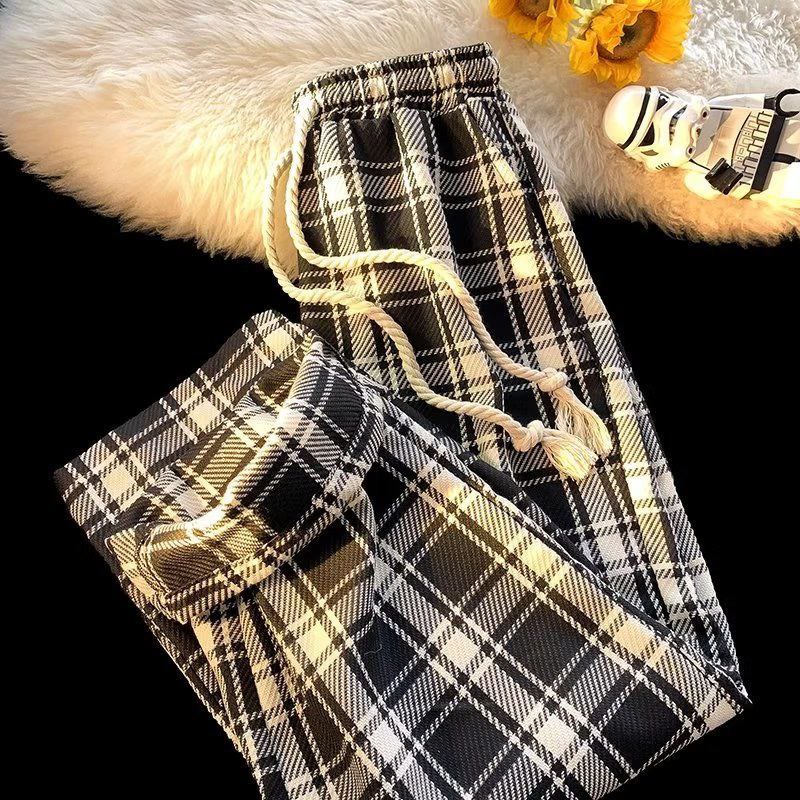 Женские брюки в клетку с высокой посадкой и эластичным поясом на шнурке. Модель выполнена из мягкой ткани с клетчатым принтом. Свободный крой обеспечивает комфорт и свободу движений, а шнурок позволяет регулировать объём талии. Подойдут для повседневной носки — легко комбинируются с разными верхами.
