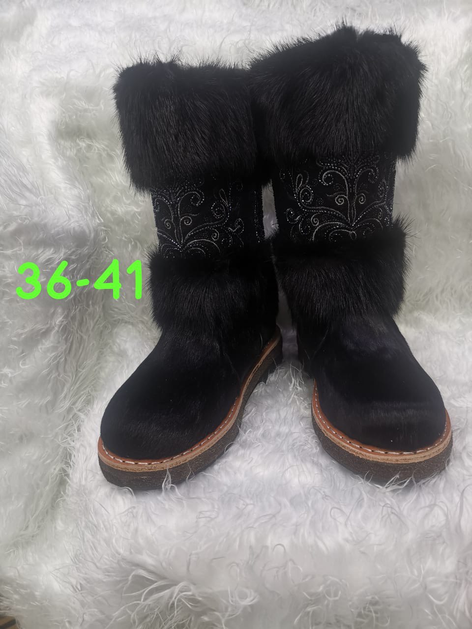 Материал верха: конский камус (устойчив к морозам до –50°C) с отделкой из норки — гарантирует долговечность и защиту от холода.