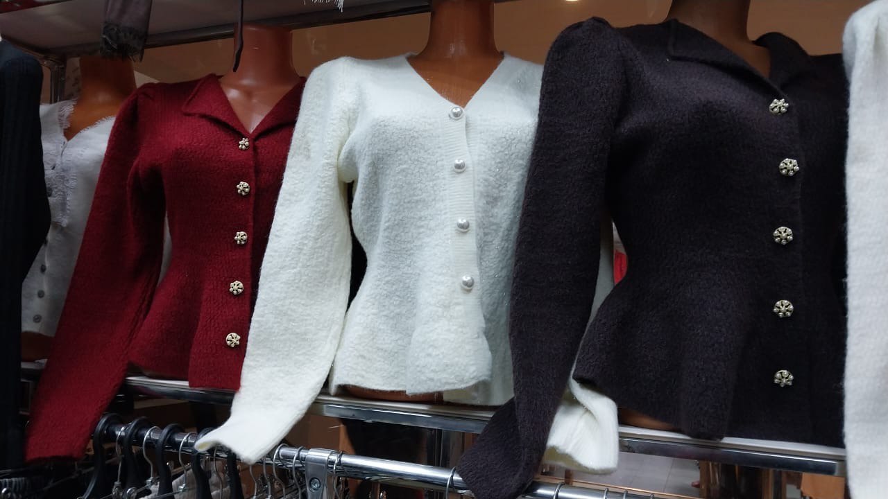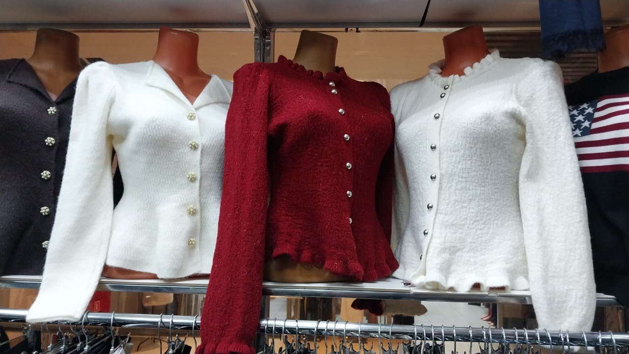 Вязаный женский кардиган на пуговицах. Отличительная особенность — декоративные пуговицы, придающие изделию элегантность. Кардиган имеет полуприлегающий крой, длинные рукава и аккуратную застёжку спереди. Воротник украшен лёгкой оборкой, что добавляет женственности. Ткань мягкая, приятная на ощупь, хорошо держит форму. Подходит для создания повседневных и офисных образов в прохладную погоду.